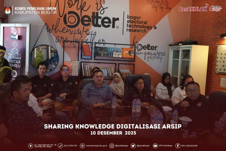 Cibinong — Komisi Pemilihan Umum (KPU) Kabupaten Bogor menyelenggarakan kegiatan Sharing Knowledge bertema Alih Media dan/atau Digitalisasi Arsip Pemilihan Umum maupun Pemilihan Tahun 2024 pada Rabu, 10 Desember 2025. Kegiatan ini dilaksanakan di Rumah Pintar Pemilu (RPP) KPU Kabupaten Bogor sebagai upaya peningkatan kapasitas pengelolaan arsip di lingkungan KPU. Kegiatan tersebut dihadiri oleh Ketua dan Anggota KPU Kabupaten Bogor, Sekretaris KPU, serta jajaran Sekretariat. Selaku pemateri, Septian Dwi Haryanto, Arsiparis Ahli Muda KPU Kabupaten Bogor, memberikan penjelasan mengenai pentingnya pengelolaan arsip secara sistematis serta langkah-langkah teknis dalam proses alih media dokumen kepemiluan. Digitalisasi arsip ini menjadi langkah proaktif KPU Kabupaten Bogor dalam mengamankan seluruh dokumen Pemilu yang bersifat masif dan krusial. Dengan proses alih media, arsip fisik ditransformasikan menjadi aset digital yang lebih mudah diakses, disimpan, dan dikelola secara jangka panjang. Tujuan utama kegiatan ini adalah memastikan bahwa seluruh data dan dokumen Pemilu dapat dijaga dengan baik, sekaligus memperkuat transparansi dan akuntabilitas pengelolaan arsip hingga tahun-tahun mendatang. Melalui Sharing Knowledge ini, KPU Kabupaten Bogor berharap seluruh jajaran semakin memahami standar digitalisasi arsip, sehingga pengelolaan informasi kepemiluan dapat berjalan lebih modern, aman, dan terpercaya. ....