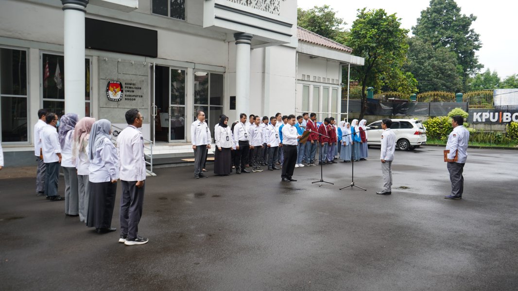 Cibinong — Keluarga besar Komisi Pemilihan Umum (KPU) Kabupaten Bogor melaksanakan kegiatan rutin apel pagi di halaman Kantor KPU Kabupaten Bogor. Apel tersebut dipimpin oleh Pemimpin Apel, Kepala Subbagian Keuangan, Umum, dan Logistik, Gumilar Darmadi, serta bertindak sebagai Pembina Apel Sekretaris KPU Kabupaten Bogor, Asep Azhar Hidayatullah. Kegiatan ini diikuti oleh seluruh Kepala Subbagian, Pejabat Fungsional, serta staf Aparatur Sipil Negara (ASN) di lingkungan KPU Kabupaten Bogor. Apel pagi rutin ini menjadi momentum penting untuk memperkuat koordinasi, disiplin, dan semangat kerja seluruh jajaran sekretariat. Dalam arahannya, Sekretaris KPU Kabupaten Bogor menekankan bahwa pelaksanaan ibadah puasa tidak boleh menjadi alasan untuk menurunkan semangat dalam menjalankan tugas dan tanggung jawab sebagai pelayan publik. Ia juga mengingatkan agar seluruh pegawai tetap menjaga kedisiplinan, profesionalisme, dan komitmen dalam bekerja sehingga pelayanan kepada masyarakat dapat terus berjalan optimal meskipun sedang menjalankan ibadah puasa. ....